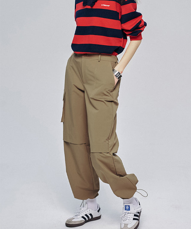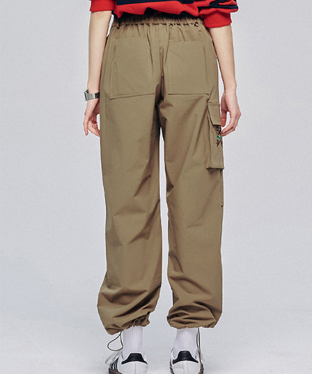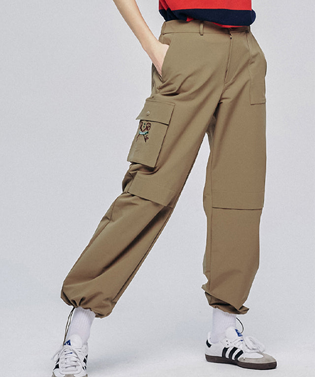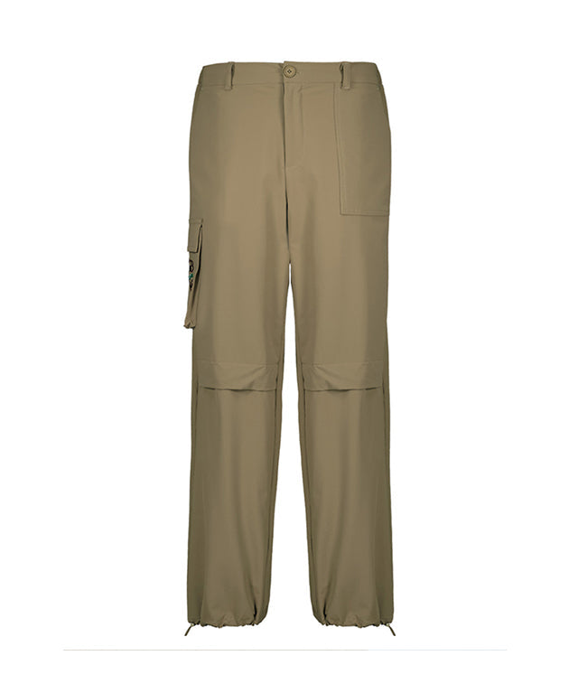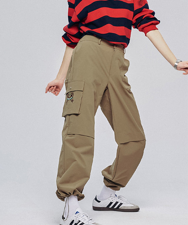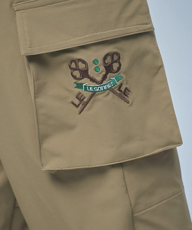 Cargo pants with logo embroidery. Cargo pants with pockets are a versatile item for a golf look. The waist banding decoration provides comfort, and the pockets on both sides and the outer pocket below allow for easy storage. The hem is also in the form of a jogger whose length can be adjusted with a string. If you want to wear your regular size by setting the size to 1.2, size 1 and 2 can be slightly oversized to create a hip atmosphere.